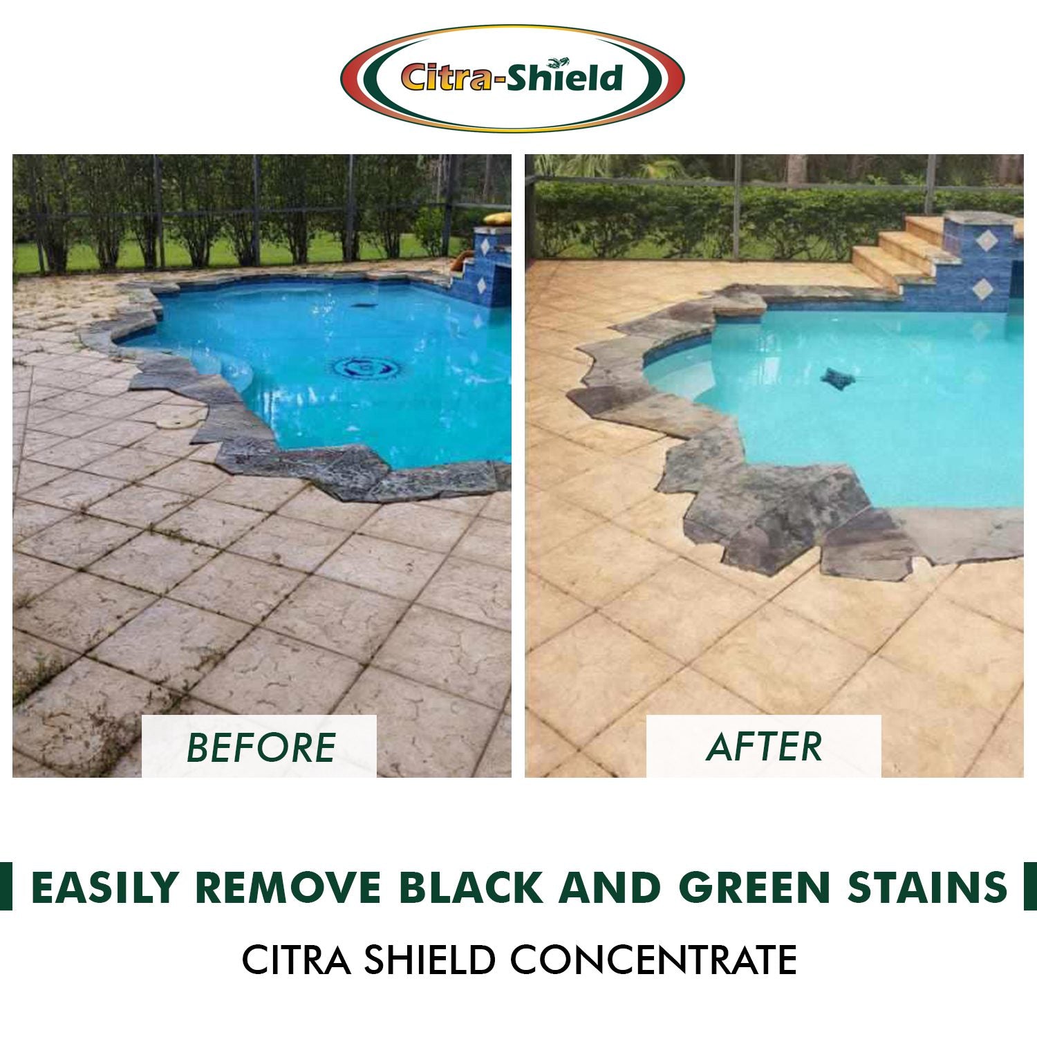 Citra-Shield Outdoor Cleaner effectively removes tough stains caused by mold, mildew, algae, and more without the need for harsh chemicals or abrasive scrubbing. Its biodegradable formula works gently on various surfaces, preserving their integrity over time.